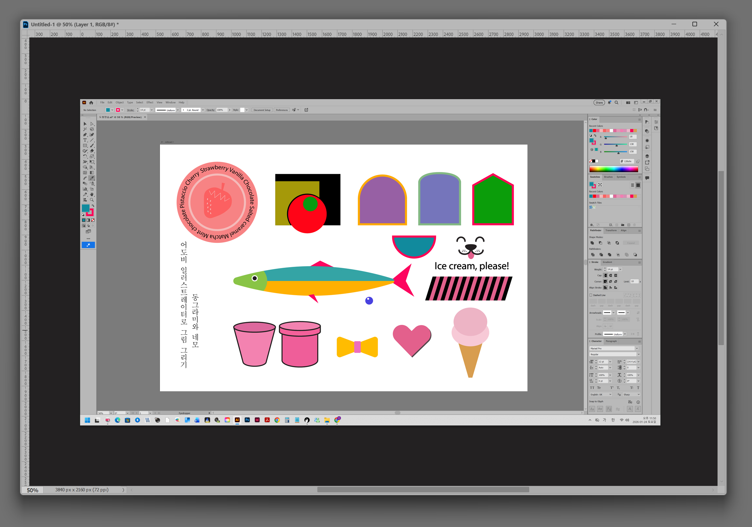 '두뇌개발'차 몇 개는 방학 때 사용법을 익혀봐야겠다 마음먹고 '일러스트레이터'(일러스트)를 이틀째 만져보고 있는데,